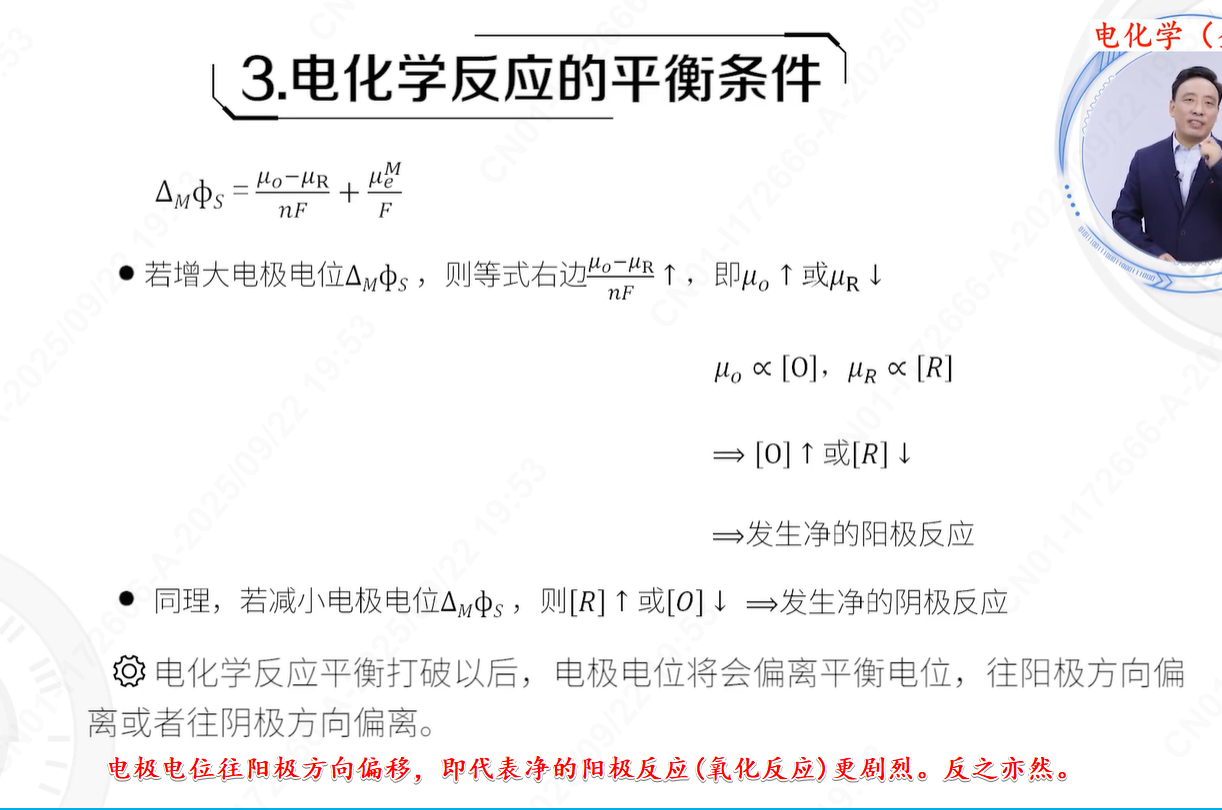 - 宏观表现:看起来好像没有任何反应发生,电极质量不变,溶液中离子浓度也不变。此时测得的电极电位就是平衡电位。