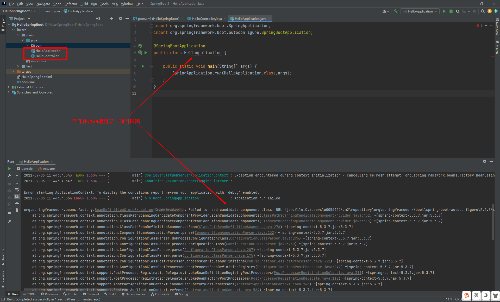 在学习SpringBoot的入门项目HelloSpringBoot时,启动报错。